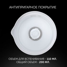 Прибор оснащен функцией автоматического отключения и контроллером Strix, который предотвращает перегрев молока. Благодаря чему при подогреве молока обеспечивается его идеальная температура. Капучинатор имеет тефлоновое антипригарное покрытие и поворотное основание 360 градусов.
