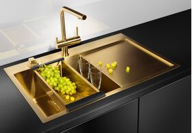 Коландер может крепиться в чаше мойки, либо на ее крыле