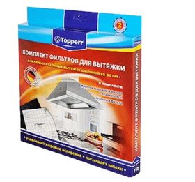 Комплект фильтров Topperr 1112 FV 2 подходит к любым кухонным вытяжкам шириной 50-60 см, удаляет запахи. В наборе 2 предмета: угольный фильтр размером 47x55 см и жиропоглощающий фильтр размером 47x55 см с индикатором Topperr.