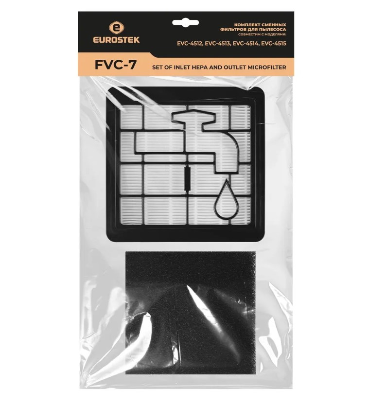 Комплект сменных фильтров FVC-7 совместим с моделями пылесосов Eurostek EVC-4512, EVC-4513, EVC-4514 , EVC-4515 . В комплекте входной HEPA фильтр и выходной губчатый микрофильтр. Благодаря своей уникальной конструкции и совершенной технологии, он способен задерживать до 99,97% вредных частиц размером всего 0,3 микрона. Это значит, что вы сможете насладиться чистым и свежим воздухом, свободным от пыли и аллергенов, что особенно важно для астматиков и аллергиков. Не жертвуйте качеством воздуха в своем доме или офисе - выберите фильтр для пылесосов Eurostek EVC-4512, EVC-4513, EVC-4514 , EVC-4515 и наслаждайтесь чистотой и свежестью воздуха каждый день!