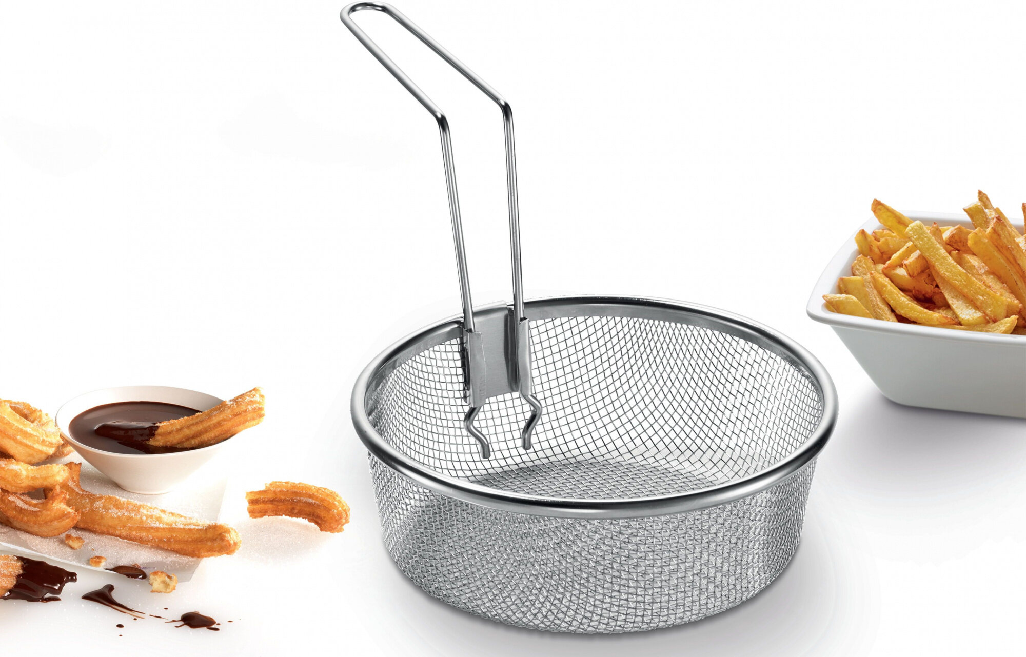 Корзина для жарки во фритюре для мультиварки Bosch. Совместима со всеми моделями мультиварок Bosch. Вместимость до 300 г. Изготовлена из высококачественной нержавеющей стали, оснащена съемной ручкой. Подходит для мытья в посудомоечной машине.