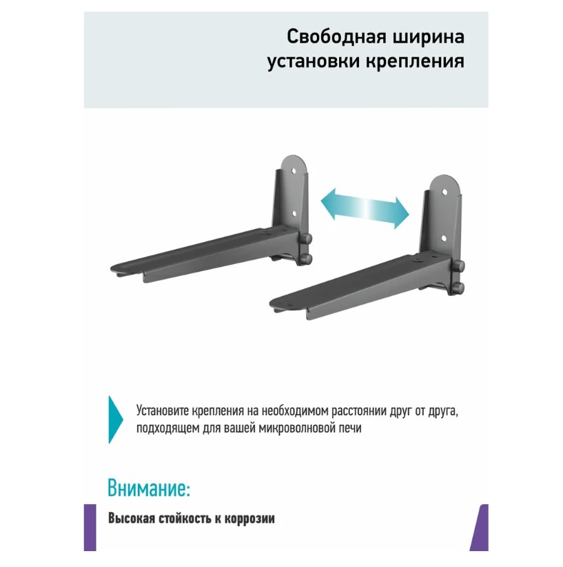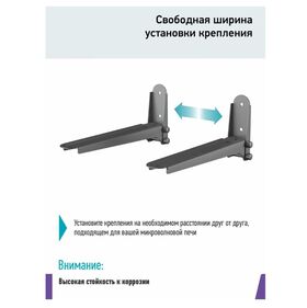 Если микроволновка просто необходима, а встроить ее некуда, всегда можно приобрести наш кронштейн и повесить печь там, где удобно, такое крепление позволяет не занимать рабочую поверхность стола и освобождает пространство.Кронштейн подойдет для размещения любой микроволновой печи, так как ширина установки регулируется и подбирается под ваши габариты. Крепление выдвигается от 285 до 425 мм, что дает возможность установки более массивных микроволновых печей.
