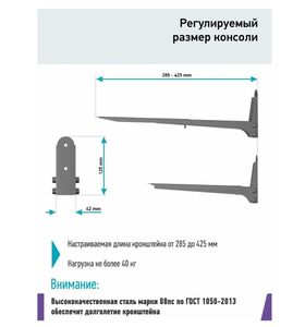Подходит для крепления бытовой техники массой до 40 кг, максимальная нагрузка подтверждена многочисленными испытаниями. В производстве мы используем высокопрочную сталь и порошковую покраску, поэтому продукт отличается высокой устойчивостью к механическим повреждениям, коррозии, а также деформации и износу.