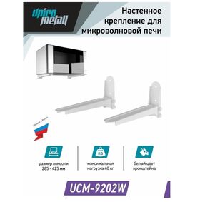 Кронштейн для крепления на стену СВЧ-печей UCM-9202W идеально подойдет вам, если возник вопрос компактного размещения микроволновой печи на маленькой кухне или в малогабаритной квартире. Если микроволновка просто необходима, а встроить ее некуда, всегда можно приобрести наш кронштейн и повесить свч печь там, где удобно, такое крепление позволяет не занимать рабочую поверхность стола и освобождает пространство. Кронштейн подойдет для размещения любой микроволновки, так как ширина установки регулируется и подбирается под ваши габариты. Крепеж подходит для крепления бытовой техники массой до 40 кг, максимальная нагрузка подтверждена многочисленными испытаниями. В производстве мы используем высокопрочную сталь и порошковую покраску, поэтому продукт отличается высокой устойчивостью к механическим повреждениям, коррозии, а также деформации и износу. В комплекте предусмотрены все необходимые для крепления метизы, монтаж простой и быстрый."Юнико Металл" - мы расширяем пространство для жизни!
