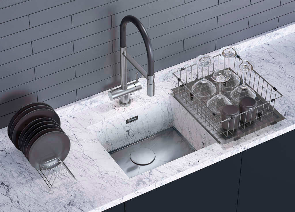 • Оборачиваемое съемное крыло для моек OMOIKIRI увеличивает рабочую площадь и помогает организовать окружающее пространство вокруг мойки
