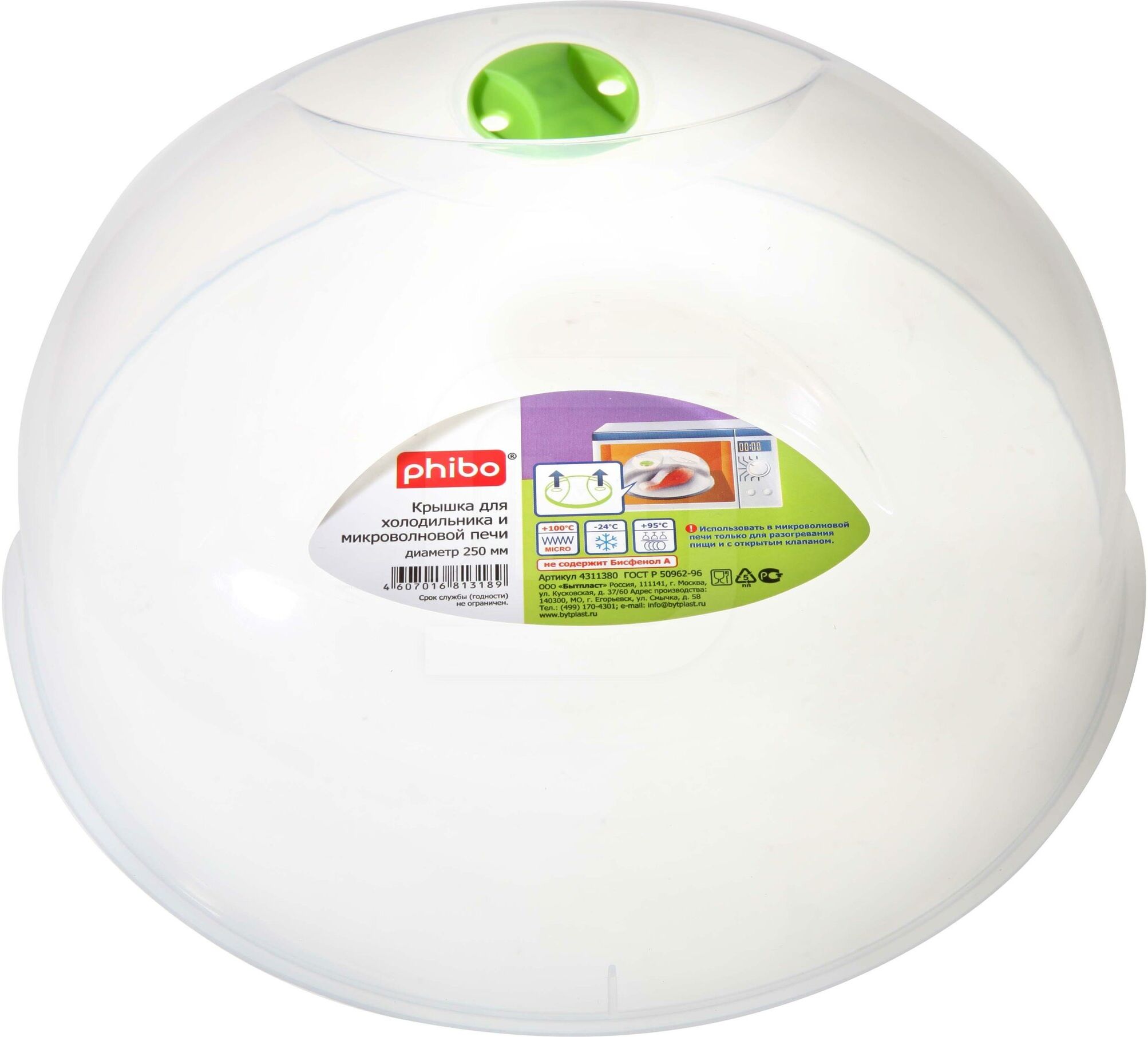 Крышка с клапаном для выпуска пара предохраняет внутреннюю поверхность микроволновой печи от загрязнения в процессе разогревания или приготовления пищи (с открытым клапаном). Клапан для выпуска пара имеет два положения: открыт/закрыт. Имеется удобная ручка для удержания крышки.