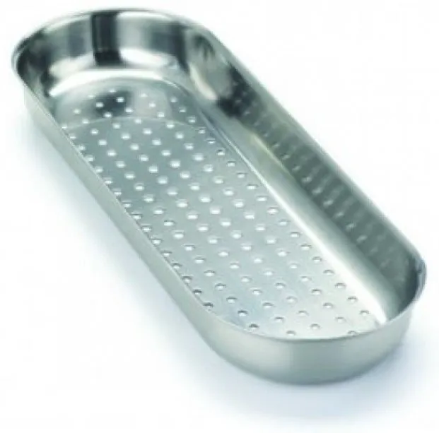 Миска для сушки Franke 112.0006.110 — полезный кухонный аксессуар из нержавеющей стали, который повторяет моечную чашу по форме. На его дне расположены ряды дырочек, которые не позволяют застояться в коландере воде.