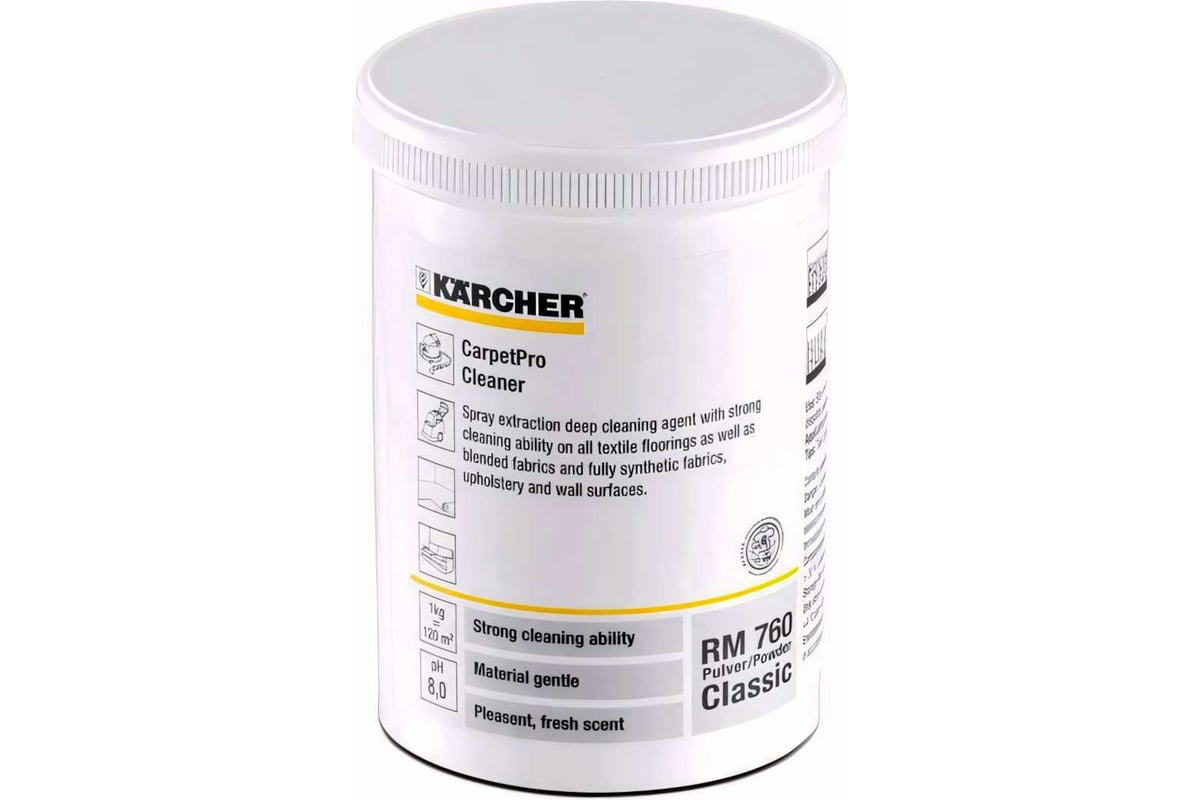 Чистящее средство Karcher RM 760 6.290-175 (800 гр) используется для очистки любых видов текстильных половых покрытий и мягкой мебели. Не содержит отбеливателей. Применение: Растворить в воде, нанести на обрабатываемую поверхность, затем смыть водой и почистить поверхность пылесосом. Емкость: 800 гр