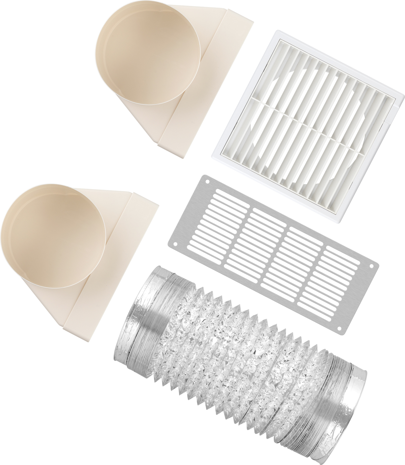 Богатая комплектация включает в себя все необходимое для подключения вашего устройства, включая решетку, гофру, вентиляционный выход и комплект крепежа!