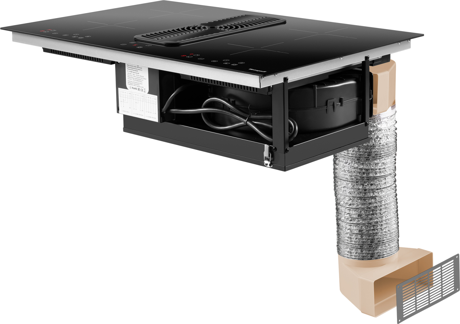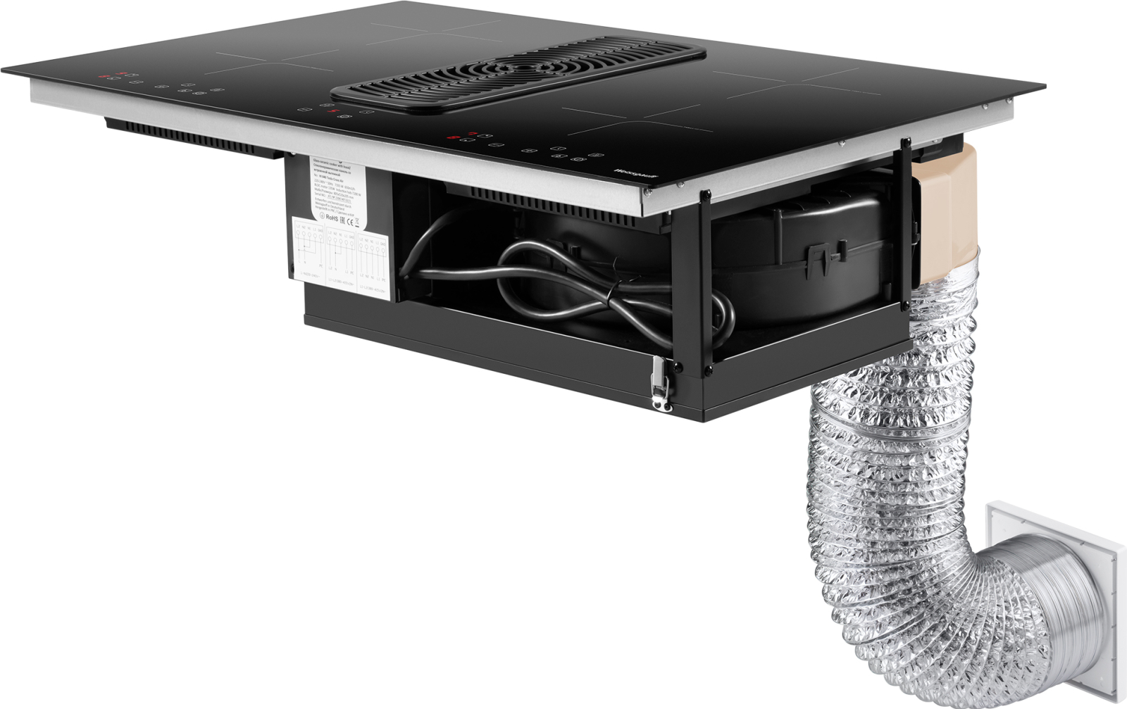 Специальный набор для подключения стеклокерамической панели со встроенной вытяжкой, подходит для использования с моделями HI 840 Tesla Cross Air и HI 840 Tesla Flex Air, позволяя использовать вашу варочную панель с вытяжкой в режиме отвода и рециркуляции.