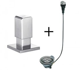 Набор доукомплектации клапаном-автоматом Blanco Levos – удобный и предельно простой в использовании механизм, благодаря которому возможно быстро перекрывать сток (выход) воды из мойки за счет удобного нажатия на ручку управления на мойке либо столешнице. Установка набора доукомплектации клапаном автоматом производится вместо стандартного корзинчатого вентиля.