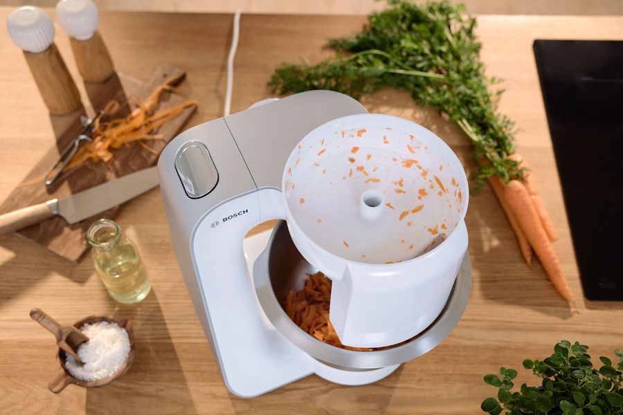 Приверженцам вегетарианской кухни набор VeggiLove: универсальная резка с 5 дисками для шинковки и терки.