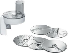 Универсальная резка, Двухсторонний диск - шинковка, двухсторонний диск - терка, терка для сырых овощей, Диск-жульен для нарезки овощей длинными тонкими ломтиками. Идеальная нарезка для блюд азиатской кухни.Диск-терка для сырых овощей: "Колючая" терка для приготовления пюре из свежих овощей.
