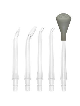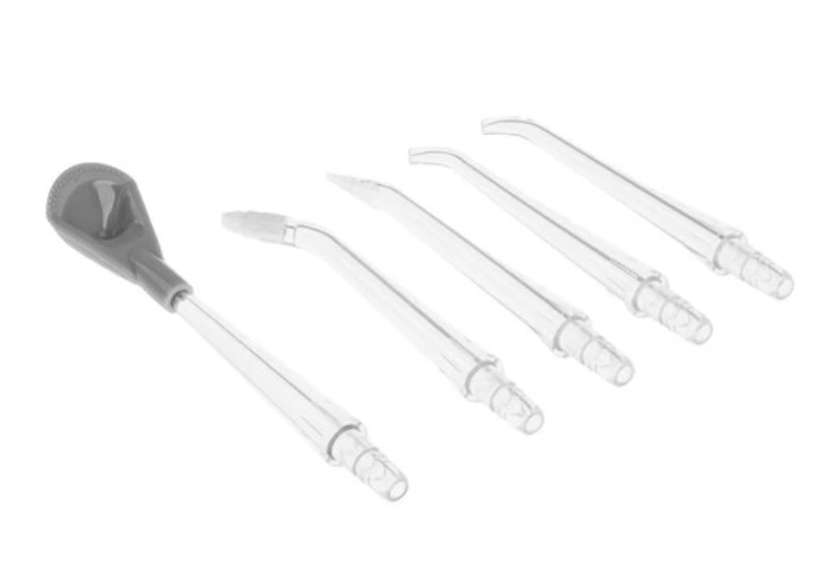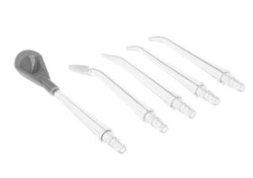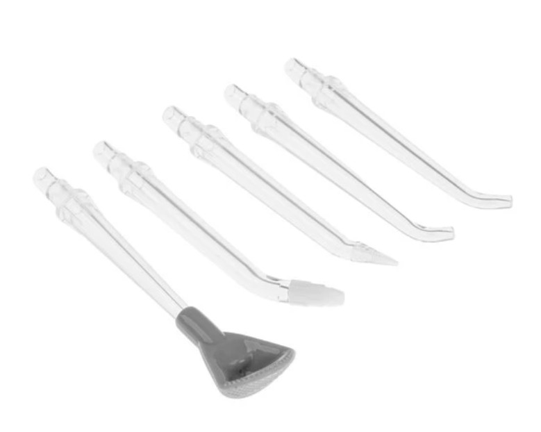 Струйная насадка — 2 шт., Насадка для удаления зубного камня и налета из-под линии десны — 1 шт., Насадка для ортодонтических конструкций — 1 шт., Насадка для чистки языка — 1 шт.