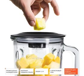 Установите RKMA-1001 на корпус кухонной машины и используйте ее в качестве стационарного блендера, чтобы измельчать ингредиенты для крем-супов, взбивать молочные коктейли, смешивать смузи, детское и спортивное питание. Набор аксессуаров RKMA-1001 изготовлен из термостойкого стекла и подходит для измельчения как холодных, так и горячих продуктов.