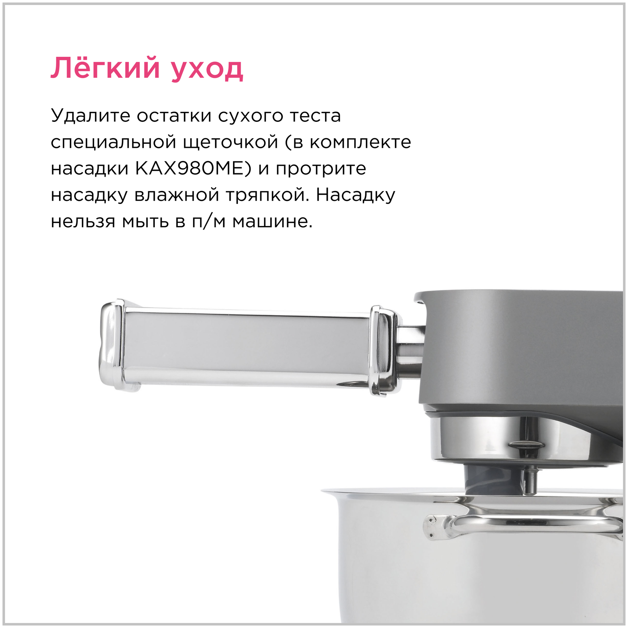 С насадкой Kenwood KAX983 Ваша кухонная машина станет для вас надежной помощницей не только в обработке продуктов, но также может помочь вам приготовить аппетитную домашнюю пасту из натуральных свежайших ингредиентов.