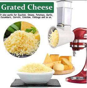 Насадка-овощерезка KitchenAid (АНАЛОГ) - эта насадка чрезвычайно полезна и используется намного чаще других насадок в большинстве рецептов. В комплект овощерезки входят три стандартных насадки для средней, крупной и мелкой резки. Все три варианта превосходно подходят для приготовления салатов, резки картофеля, измельчения фруктов и сыра. Если в середине рецепта вам потребуется переключить режим с резки на шинковку, вам не придется снимать всю насадку с миксера, необходимо только заменить соответствующий нож и продолжать измельчение в ту же чашу.