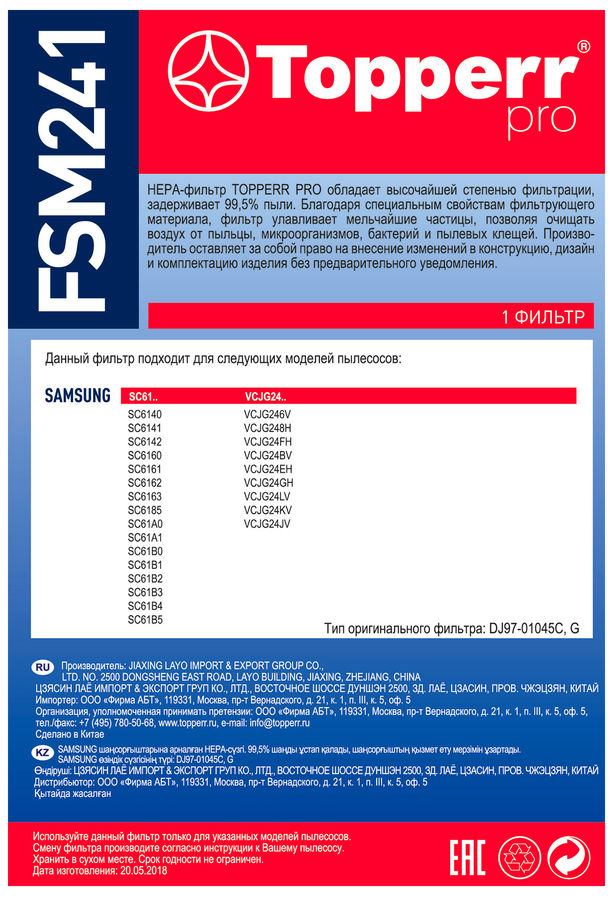НЕРА-фильтр Topperr FSM241 (1фильт.)
