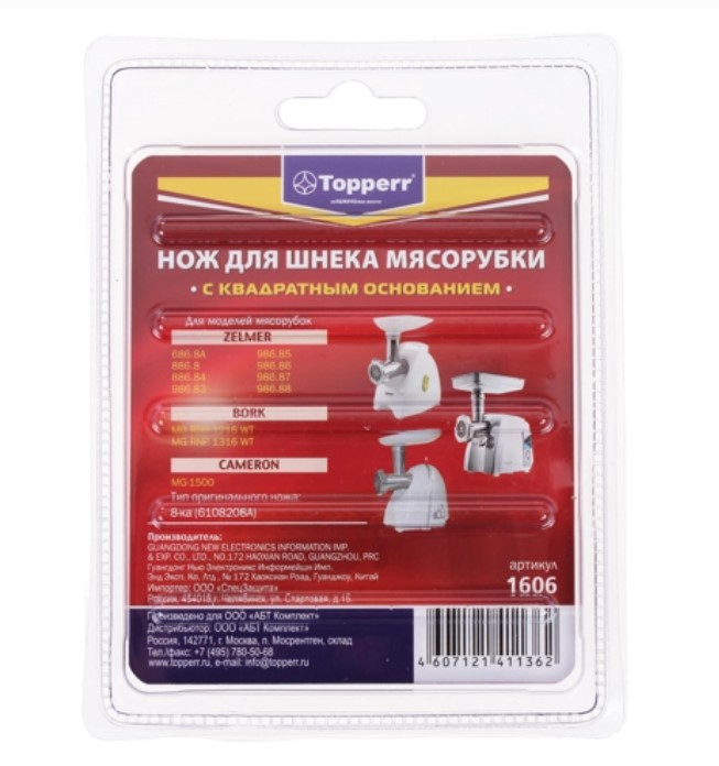 Нож для шнека с квадратным основанием Topperr 1606 подходит для моделей мясорубок ZELMER, BORK, CAMERON.