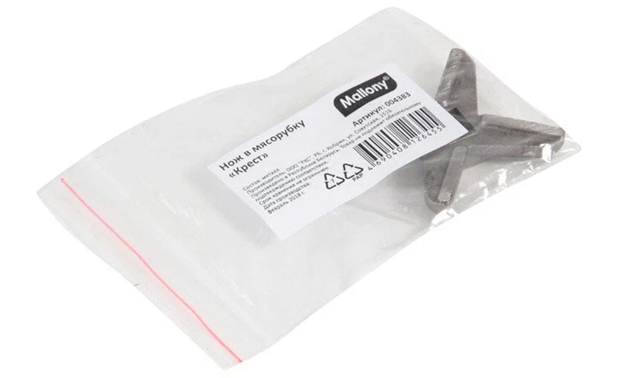 Сменный нож предназначен для быстрого приготовления фарша в мясорубке.