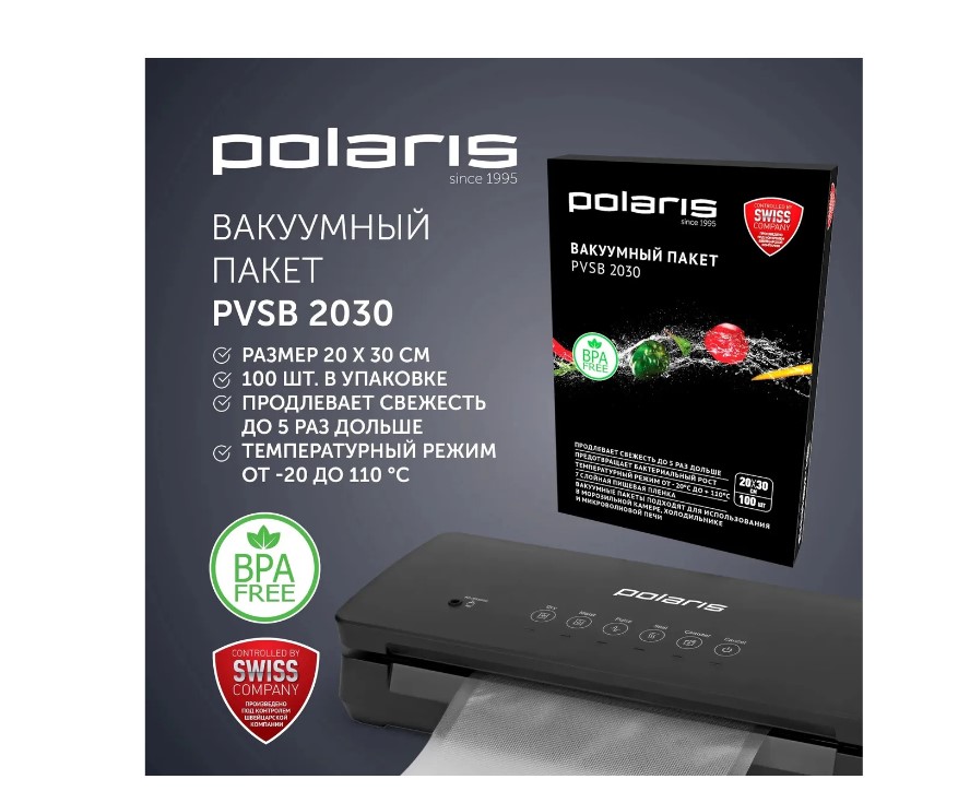 Продлевает свежесть до 5 раз дольше, Предотвращает бактериальный рост, Температурный режим от - 20?С до +110С, 7 слойная пищевая пленка, Вакуумные пакеты подходят для использования в морозильной камере, холодильнике и микроволновой печи. 100 штук.