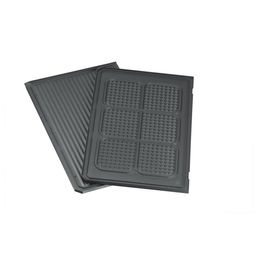 Съёмная пластина для контактного электрогриля пригодится, если по какой-то причине требуется замена поверхности. Пластина выполнена из литого алюминия с антипригарным покрытием. Имеет две стороны — рифлёную и для выпечки вафель.