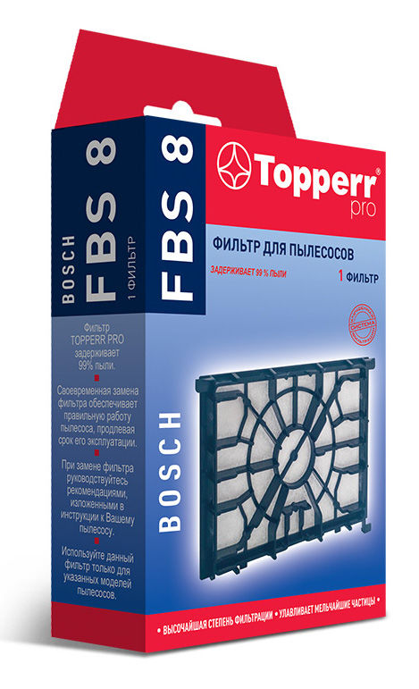 Предмоторный фильтр FBS 8 для пылесосов Bosch. Фильтр длительного использования защищает двигатель пылесоса от попадания крупных частиц пыли, задерживает 99% пыли, продлевая срок службы Вашего пылесоса.