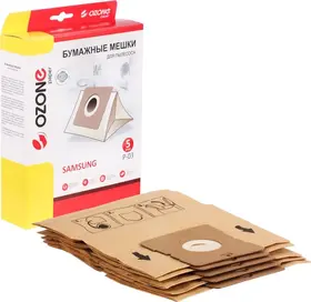 Мешки пылесборники для пылесоса SAMSUNG, 5 шт., бумажные, бренд: OZONE, арт. P-03, тип мешка: VP-77.