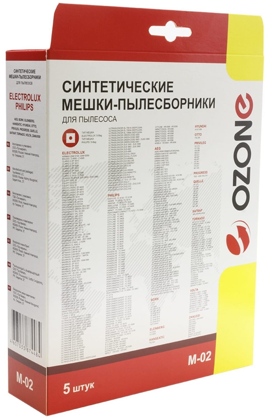 подходят: AEG, PHILIPS, TORNADO, VOLTA, ZANUSSI, бренд: OZONE, арт. M-02, тип оригинального мешка: S-Bag.