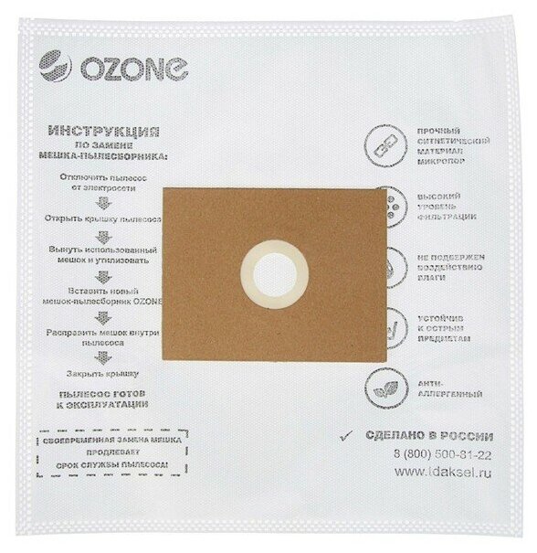 Многоразовый универсальный мешок-пылесборник Ozone для пылесоса, UN-01, 4 шт – сменный аксессуар для пылесоса. Мешок выполнен из синтетики, имеет двойную систему высокой фильтрации и задерживает до 99.9 % микроорганизмов, пыльцы и пыли, снижает общий уровень аллергенов в доме. Максимальная мощность всасывания даже при полной загрузке, повышенная прочность для сбора даже острого мусора, устойчивость к воздействию жидкости. Снижают нагрузку на двигатель пылесоса и продлевают срок службы его турбины на 20%.
