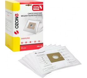 Мешки-пылесборники синтетические для пылесоса, 12 шт OZONE XXL-04 предназначены для сбора мусора и пыли пылесосами. Мешки изготовлены из синтетического микроволокна.