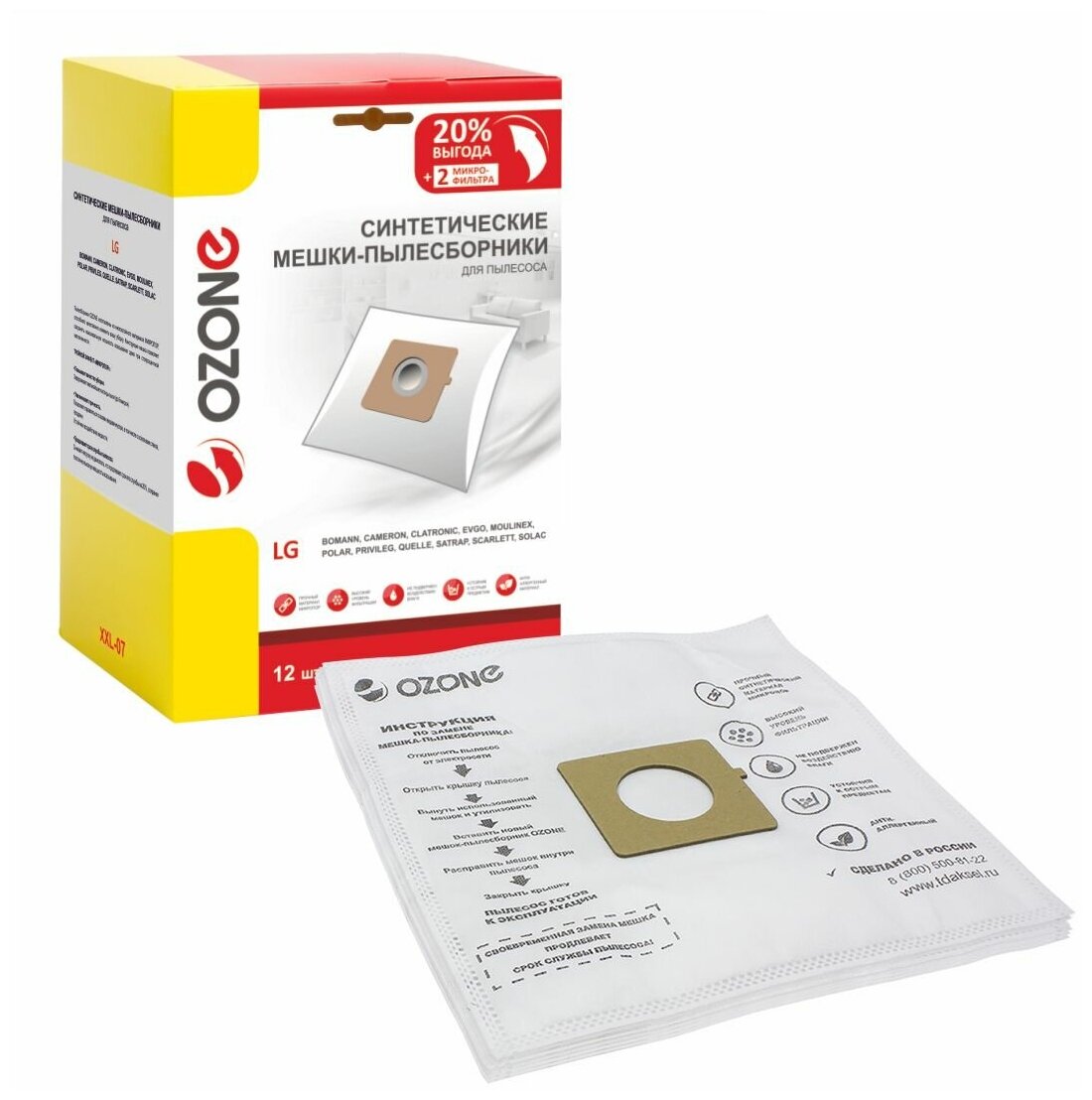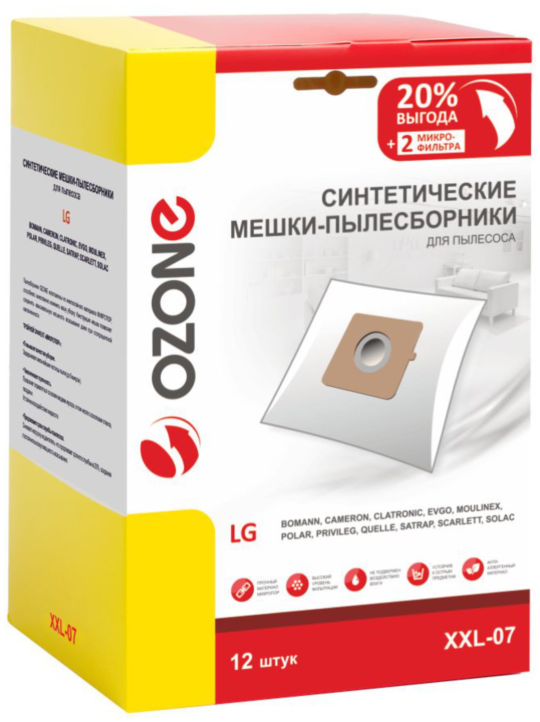 Мешок-пылесборник Ozone XXL-07 произведен из плотного синтетического материала с тройным эффектом «микропор». Это гарантирует удержание частиц размером до 5 микрон. Плотная текстура устойчива к воздействию влаги и деформированию, что позволяет собирать осколки стекла и мелкие гвозди.