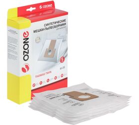 Мешки-пылесборники оригинальные синтетические (5 шт.) OZONE classic Thomas Twin M-09 изготовлены из специального синтетического материала, обладающего отличными фильтрующими свойствами и способного задерживать мельчайшие частицы пыли. Данный пылесборник обладает повышенной прочностью и не склонен к разрывам. Можно применять для сбора как сухого, так и влажного мусора.