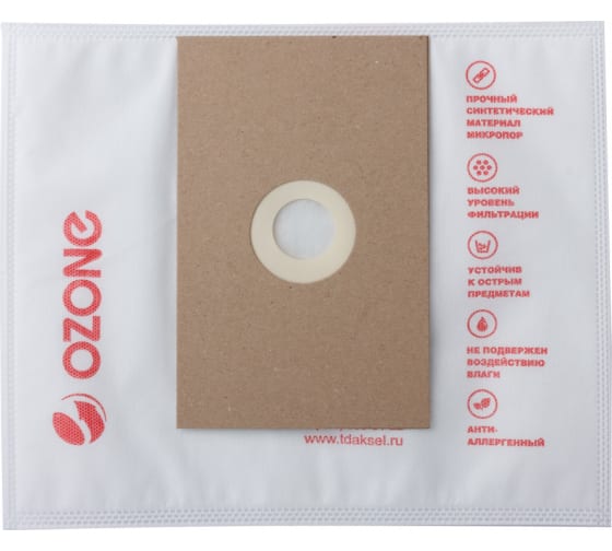 Модель пылесборника одноразового использования, поэтому изделия в комплекте прилагаются в количестве 4 штук. Приложив картонный фланец пылесборника от Вашего пылесоса к фланцу Ozone, Вам необходимо обвести контур карандашом. Далее вырезать ножницами по образцу и установить в пылесос.
