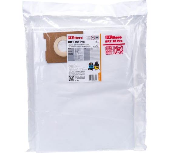 Мешок-пылесборник FILTERO BRT 20 Pro (5 шт; 30 л) 05621 может использоваться совместно со строительными пылесосами. Изготовлен из трехслойного нетканого синтетического волокна MicroFib. Пылесборник отличается высокой прочностью, благодаря чему не боится влаги и острых предметов. Обеспечивает тонкую очистку от мельчайших частиц пыли.
