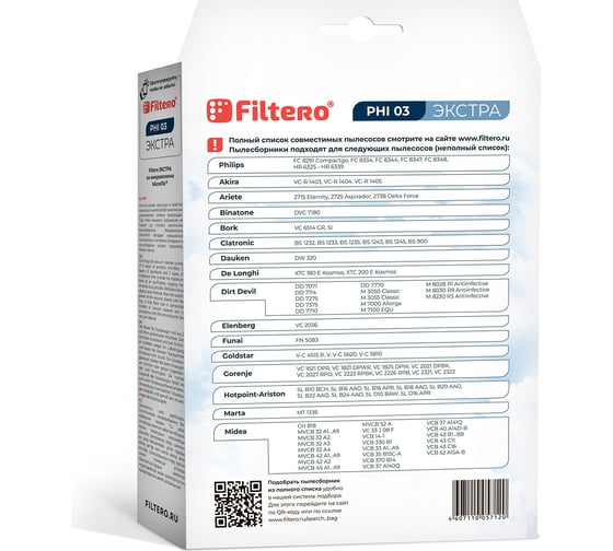 Мешки для пылесоса PHI 03 (4) Экстра 4 шт FILTERO 05712