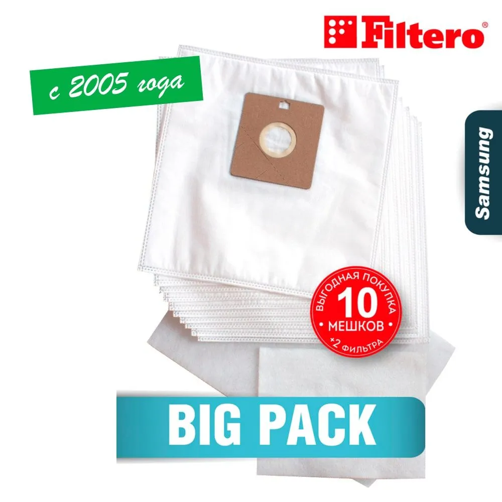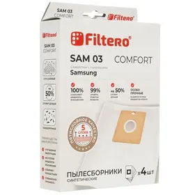 Мешки-пылесборники Filtero SAM 03 Comfort Big Pack для мешковых пылесосов с диаметром входного отверстия 46 мм (размер фланца 110*100 мм) - подходят большинству моделей пылесосов Samsung (Самсунг), Rolsen (Ролсен), Evgo (Евго), Hyundai (Хендэ), Leran (Леран), Nesons (Несонс), Shivaki (Шиваки) и пр.