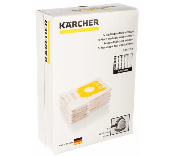 Фильтр-мешок Karcher 6.904-329 предназначен для пылесосов VC 6100, VC 6200 и VC 6300. Эффективно собирает всасываемый мусор и дополнительно защищает внутренние детали и механизмы пылесоса от засорения. Фильтр изготовлен из нетканого материала, обладающего повышенной прочностью. Преимуществом использования такого фильтра является объем фильтрации, который в 2-3 раза превышает объем фильтрации бумажных фильтров. Это позволяет реже производить замену фильтра и экономит время на уборку. После использования фильтр легко утилизируется.