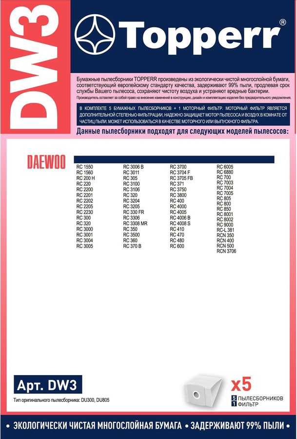 Пылесборники Topperr DW3 1003 (5пылесбор.) (1фильт.)