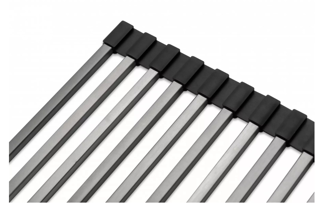 Универсальный аксессуар 3-в-1: подставка для горячей посуды, сушилка для продуктов и коврик для разморозки. Совместим с мойками серии PRO и другими моделями длиной 355-385 мм. Оснащен защитными силиконовыми наконечниками для установки на столешнице, мойке или в направляющих. Термоустойчив, не деформируется, не царапает поверхности. Безопасен для посудомоечной машины, микроволновки и морозилки. Сворачивается в компактный рулон для хранения.