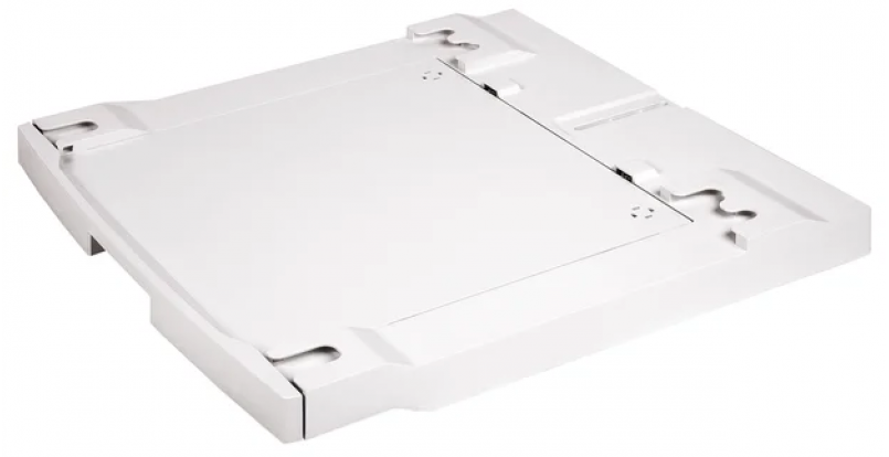 Соединительный элемент SKP11GW3 поможет расположить сушильную машину над стиральной. В комплект поставки входят все крепёжные элементы и нужный инструмент. Выдвижная полка, на которой можно будет удобно разместить корзину для высушенного белья.
