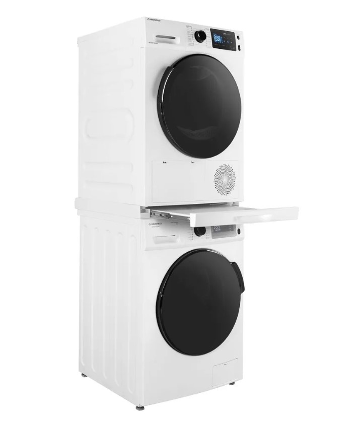 Соединительный элемент с выдвижной полочкой MAUNFELD WM-SK позволяет установить сушильный аппарат на стиральную машину "в колонну".