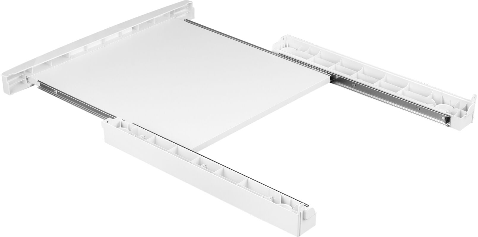 Соединительный элемент для монтажа сушильной машины в колонну на стиральную машину, устанавливается между стиральной и сушильной машинами и исключает вероятность падения или опрокидывания машин. Соединительный элемент оснащен выдвижной полочкой для белья, изготовлен из нержавеющей стали. Обращаем внимание, что при установке стиральная машина всегда должна находиться снизу, а сушильная машина - сверху.