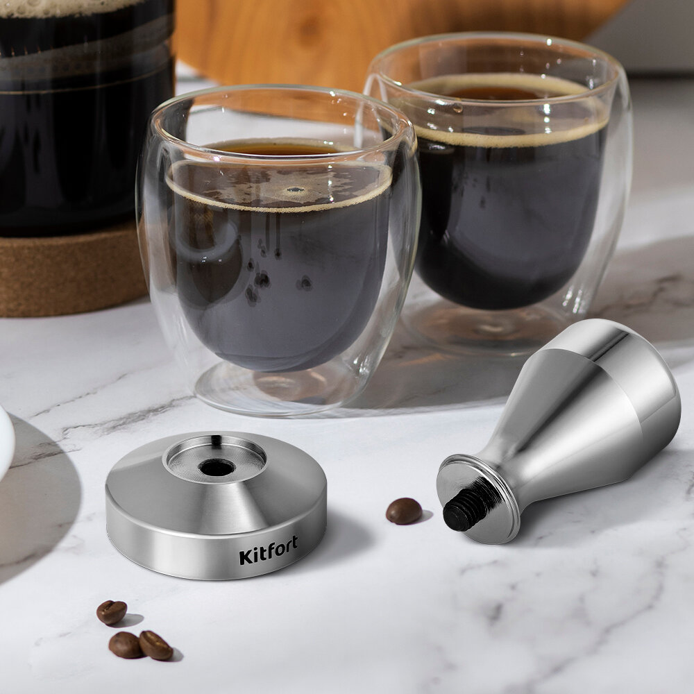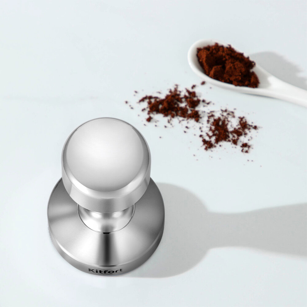 Темпер Kitfort KT-1248 поможет правильно утрамбовать кофейную таблетку. Подходит для кофеварок с диаметром рожка 52 мм.