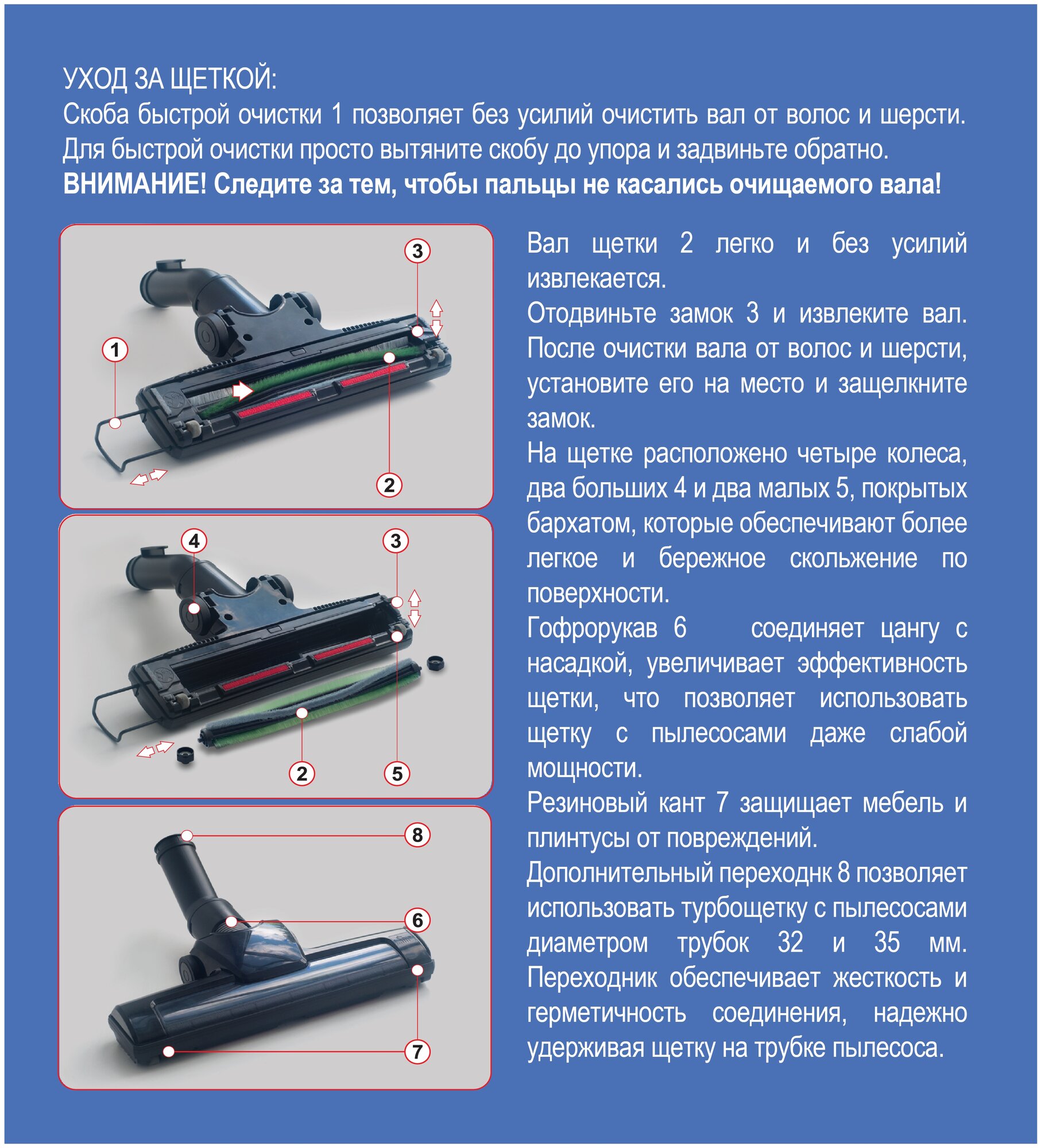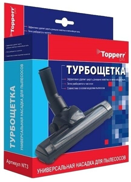 Порой некоторые элементы бытовых приборов приходят в негодность в результате неудачной эксплуатации или естественного износа. Не спешите менять пылесос, если его щетка пришла в негодность. Просто замените ее на турбощетку Topperr NT 3, которая разработана инженерами компании Topperr для всех моделей пылесосов, трубки которых обладают диаметром в 32-35 мм.