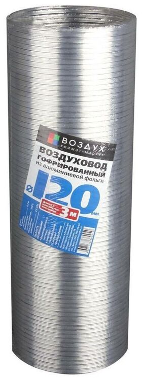 Воздуховод гофрированный Elikor ВГ-1 d 120 мм, 3 м представляет собой гибкую трубу, которая используется для прокладки вентиляционных канальных систем в жилых, производственных и коммерческих помещениях, например, в офисах, подсобках, местах общественного питания, заводских цехах и т.д. Модель выводится в наружную шахту в целях устранения загрязненного воздуха и неприятных запахов из комнаты. Следует учесть, что для установки потребуется решетка с фитингом и хомут. Длина трубы составляет 3 м, а диаметр — 120 мм. Чтобы производительность была выше, а уровень шума как можно ниже, не рекомендуется делать много изгибов и формировать слишком длинную вентиляцию.