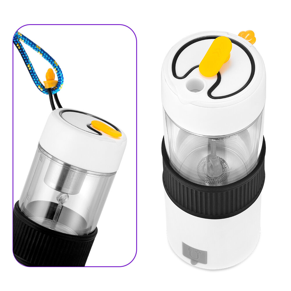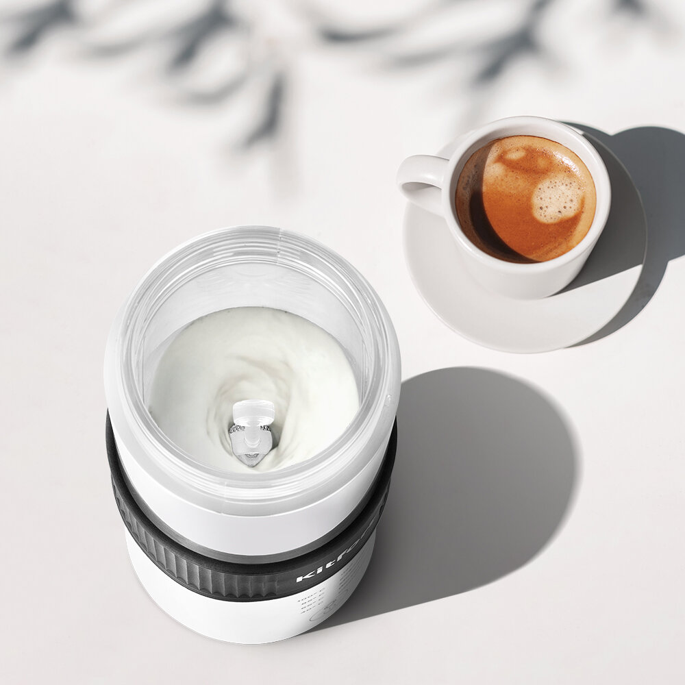 Силиконовая вставка на корпусе не даст вам обжечься или выронить из рук устройство. Отверстие в крышке позволяет удобно наливать получившийся напиток в чашку. Для удобной переноски у капучинатора есть шнурок, который убирается в крышку.