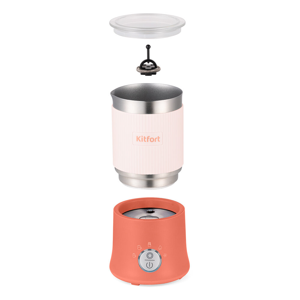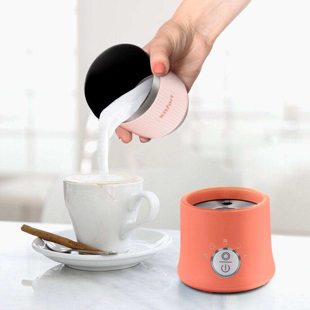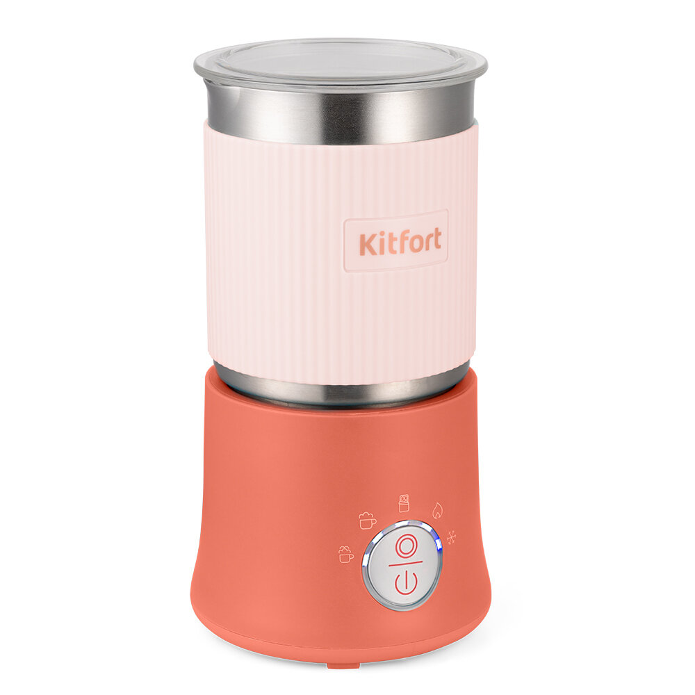 Капучинатор Kitfort КТ-7158 порадует вас не только пышной молочной пенкой, но и своим креативным дизайном. Прибор выполнен в коралловом и голубом цветах. Выберите любимый цвет капучинатора и украсьте им вашу кухню!