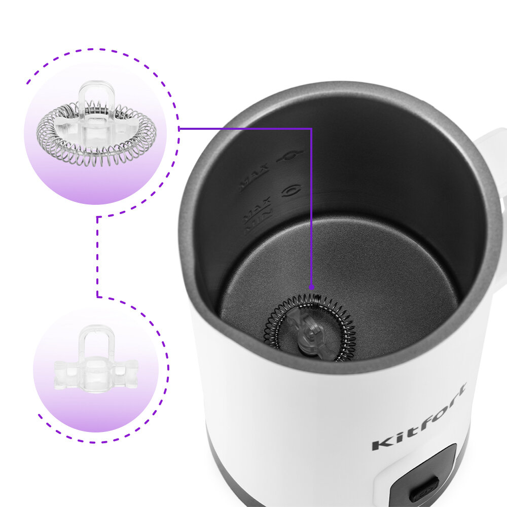 Капучинатор КТ-7177 — устройство для приготовления молочной пенки, используемой для напитков на базе эспрессо: капучино, латте и латте макиато. КТ-7177 — идеальный выбор для приготовления плотной и однородной молочной пены для любимых напитков!