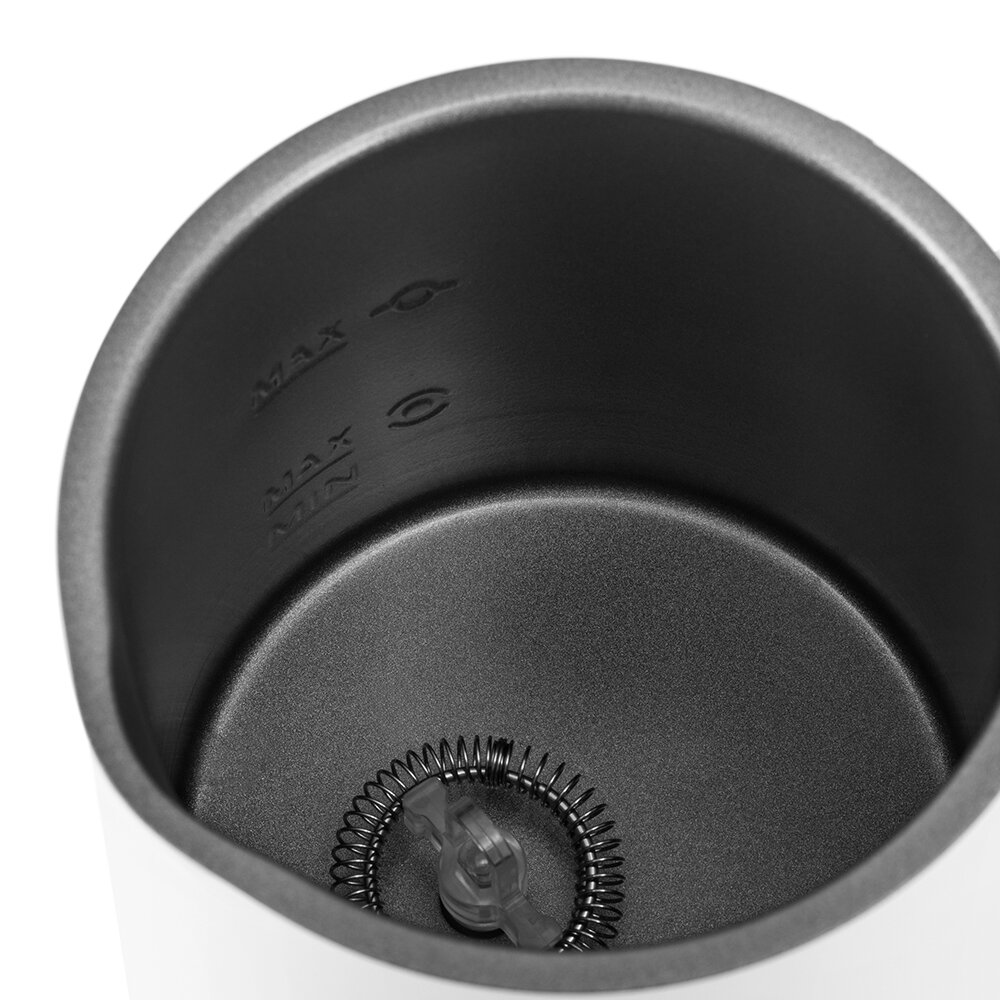 Капучинатор автоматически отключается, когда процесс взбивания или смешивания выполнен. Также вы можете остановить процесс приготовления вручную. Управление осуществляется с помощью одной кнопки на корпусе.